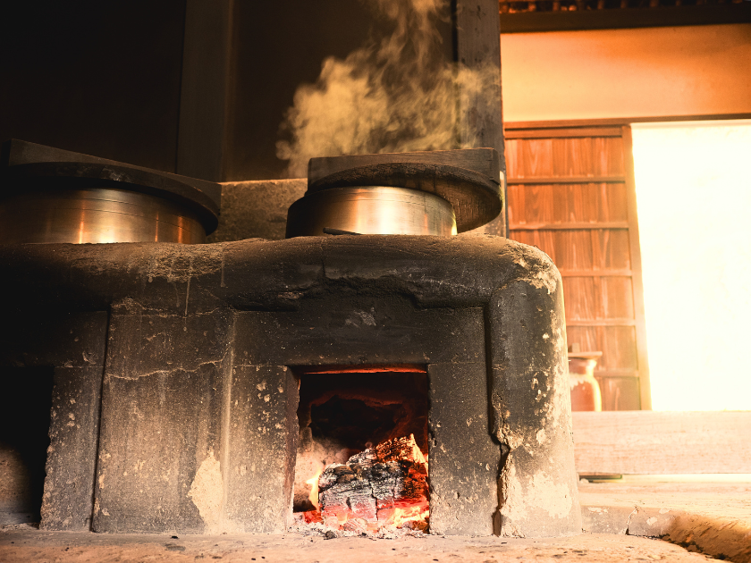 - “Kama” literally means a sickle, but in this case, it refers to a Japanese traditional cooking stove “kamado“.